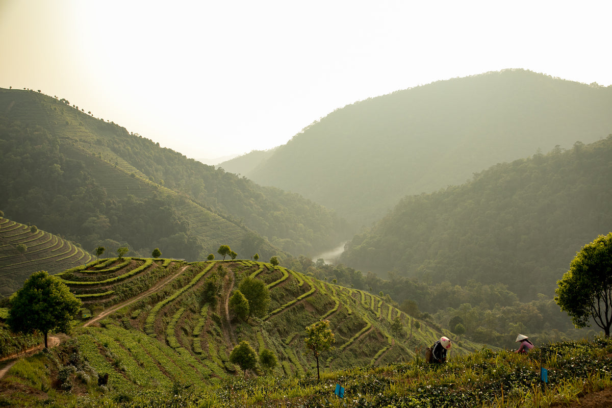 Ma Wei Shan ("Horse Tail Mountain") is a model example of central Yunnan tea farms. Its hillsides are striped with xiao shu ("young tree") bushes 20-30 rows up and speckled with bird-nesting trees. The tallest tea plants grow in the area's iron and aluminum-rich red soils at over 1300 meters.